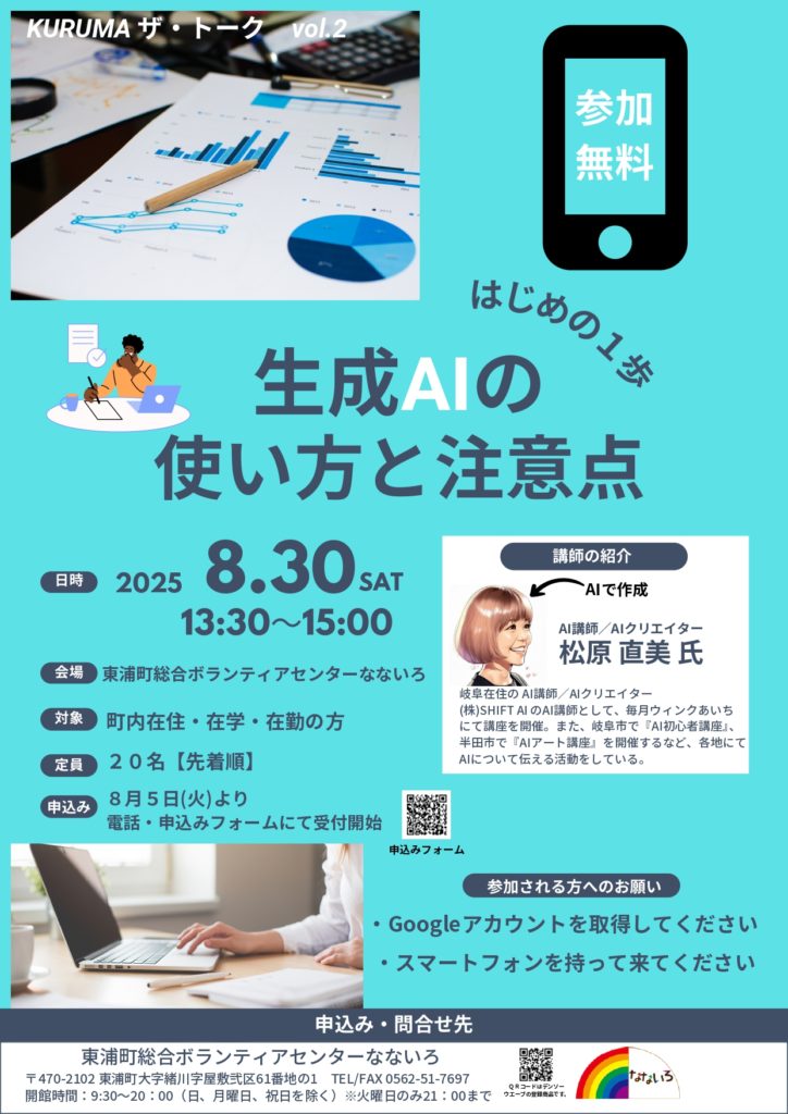 お知らせ 車座vol.2「はじめの1歩 生成AIの使い方と注意点」開催のお知らせ