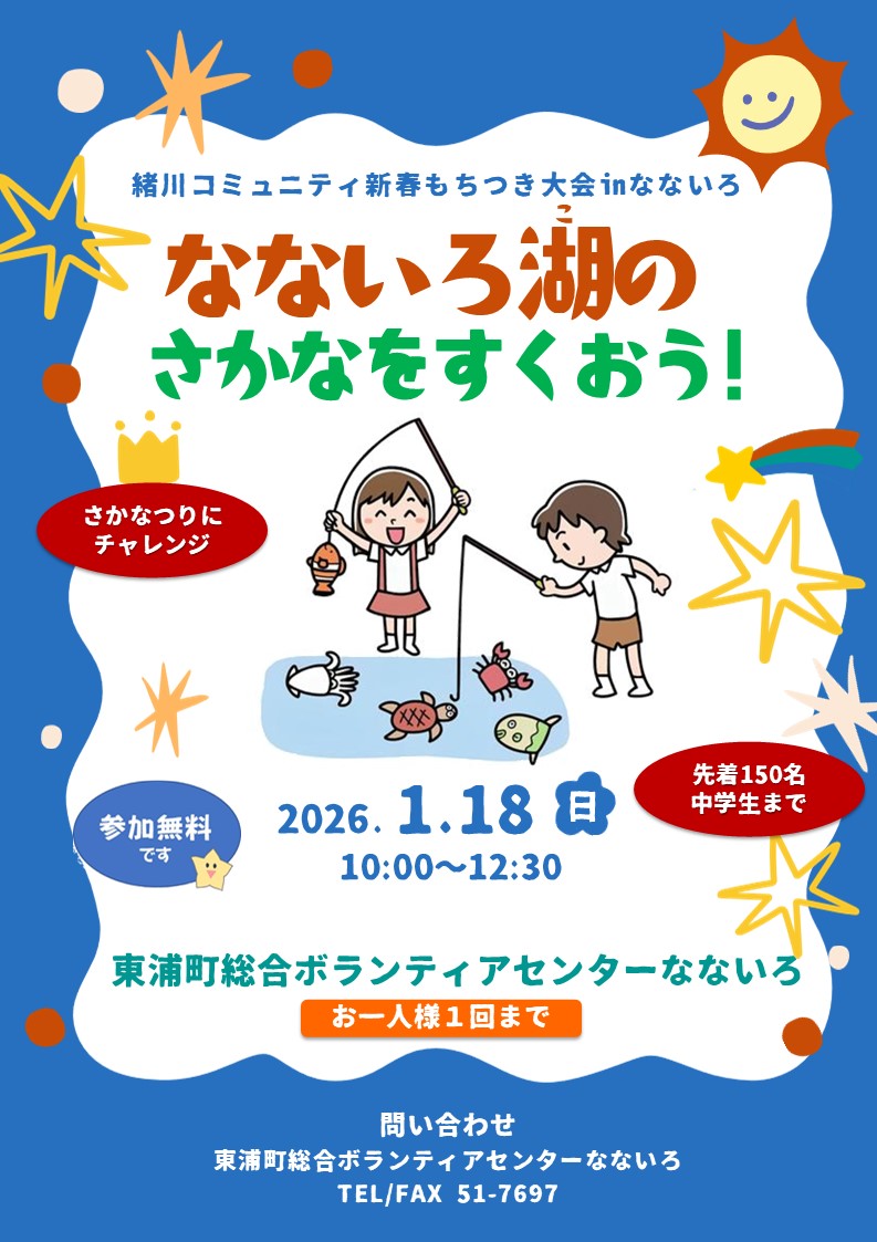 内容は中学生まで参加できるミニゲーム「なないろ湖のさかなをすくおう!」です!