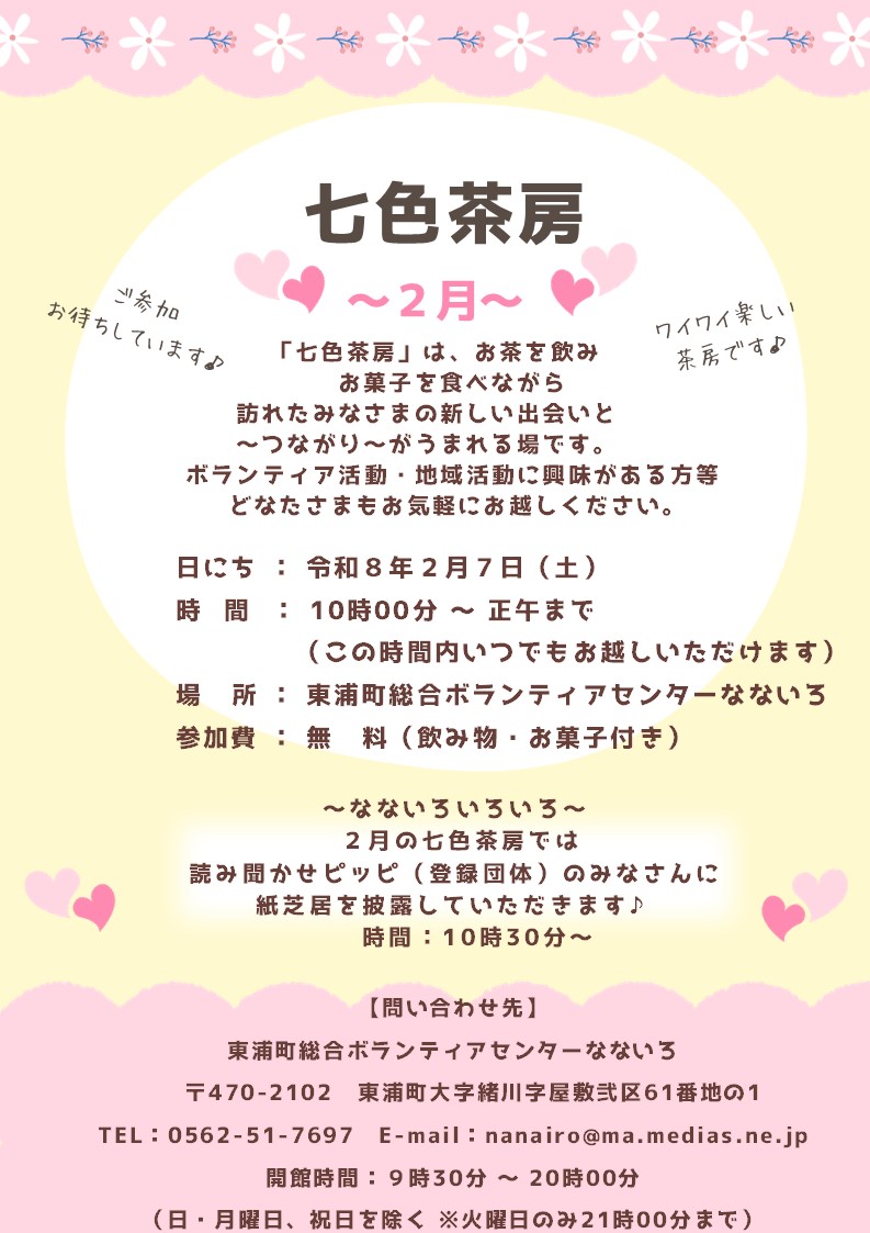 TOPICS ~七色茶房2月~開催のお知らせ